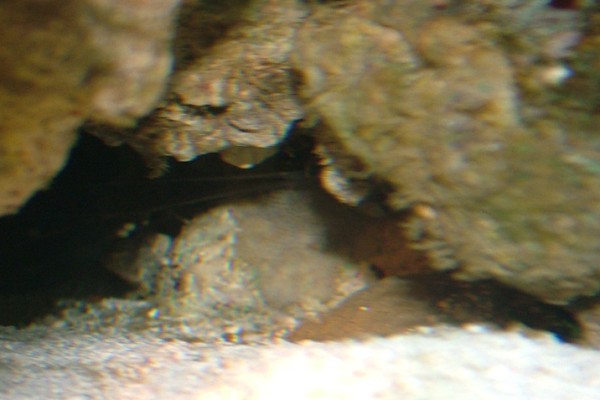 Har gennem et stykke tid set dette syn - lange tynde tråde, som tilsyneladende trækkes organisk materiale ind til sig og danner sig en bunke. Kan ikke se selve dyret, da det sidder godt gemt oppe under stenene. Er det mon en spaghetti worm?