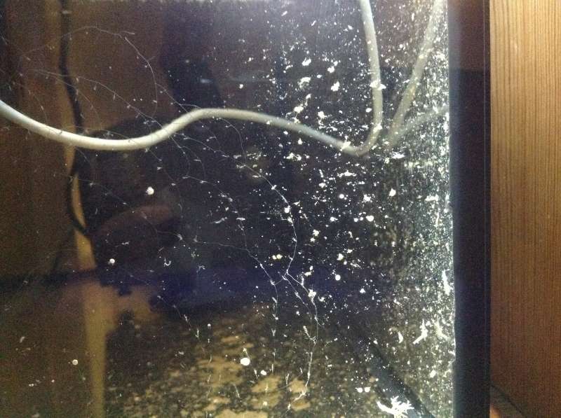 Nu har været i gang med en lommelygte for at lyse godt op hvor den sidder. Det kraftige lys viser at der sidder enormt meget på den rude (returkammer i sumpen), der er også nogen tråde der ligner en form for planter ?! Jeg tror faktisk hele ruden er levende.....!