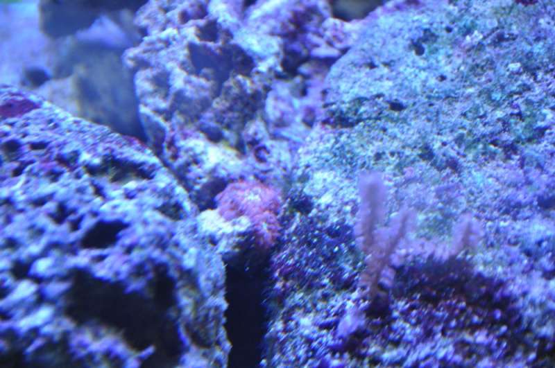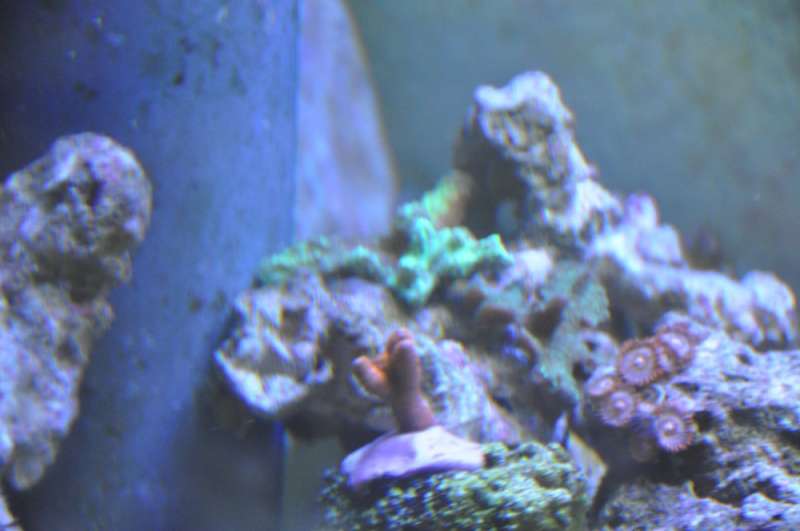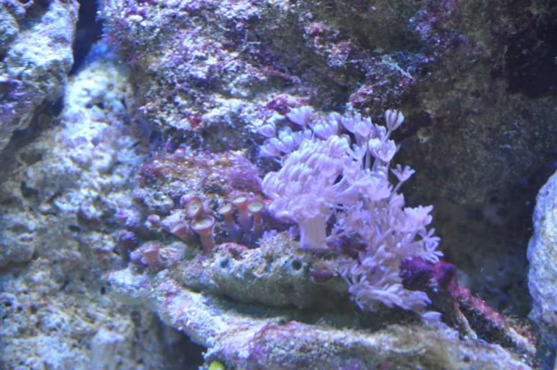 De her lillae 'bobler' virker meget gummi agtige og det ser ud til at der er en enkelt green med pumping xenia. imellem. Den brune koral og den grønne er begge fragmenter som jeg ikke aner hvad hedder :)