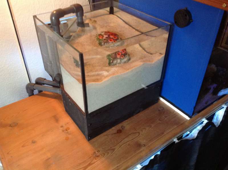 Akvariet bliver koblet på det store system, og jeg vil sandsynligvis prøve at lave en DSB i det, mest for sjov, og for at se hvad der sker i sandet rent biologisk, hvilke dyr vil der kommer osv.