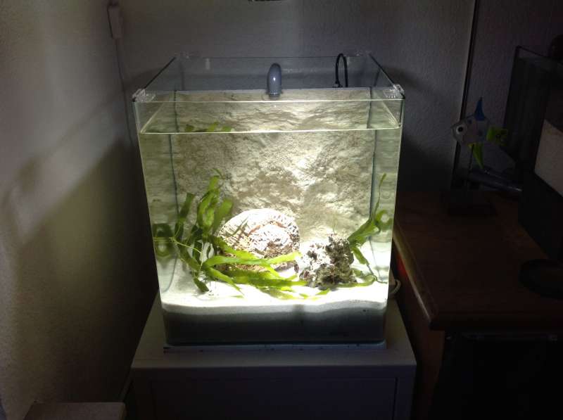 Planen er at der skal et LED spot over, jeg er lidt spændt på hvad der vil ske i sådan et lille akvarie :)