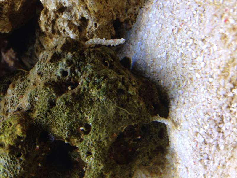 Det er et dyr som bygger et rør af sten fra bunden, hvor der kommer en tentakel ud og tager sten op