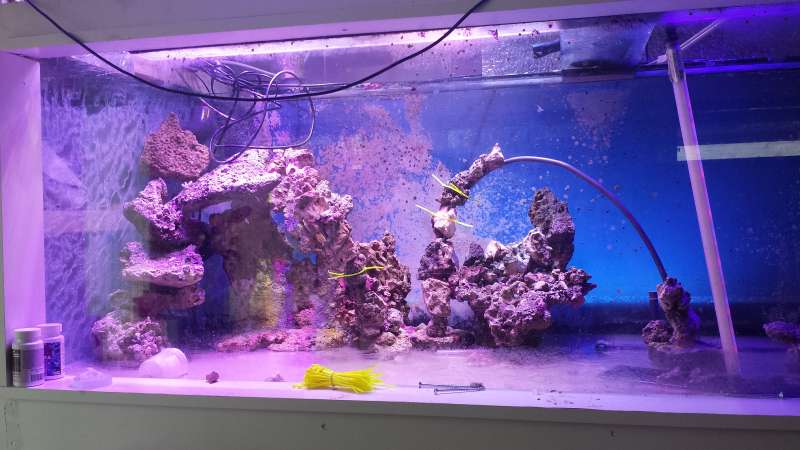 Jeg har jo stadig 1500 liter saltvand der er velkørende så håber ikke og planere at få i vand mandag/tirsdag og koraller senest en uge efter. Min bror kommer og han ville elske at hjælpe med at lime osv.