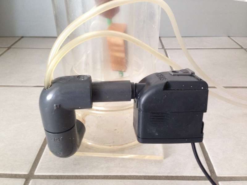 Jeg har fjernet Eheim pumpen og koblet den på nedløbet fra akvariet.