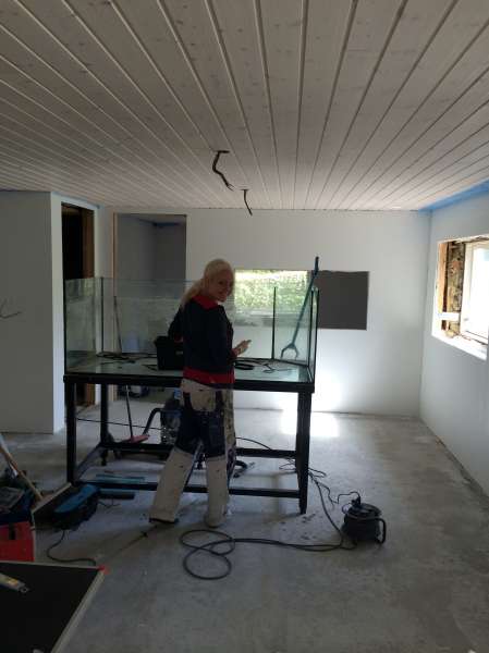 idag går jeg så i gang med at lave fald under akvariet til et gulvafløb så der er sikring på hvis det bliver utæt.