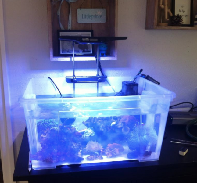 Har også bestilt Chemiclean for at komme af med cyanoen inden sten og koraller flytter tilbage i akvariet. Testsæt er også købt, så fremover vil der blive holdt nøje øje med værdierne. Jeg droppede min idé om et refugium i sumpen og lavede istedet plads til et ferskvandskammer, så jeg kan tilslutte min osmolator og dermed holde en stabil tilførsel af RO vand.