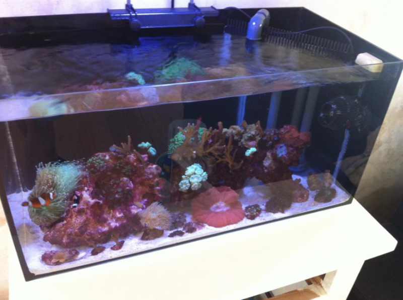 Så har jeg indledt projekt "få et flot nano akvarie". Jeg har til formålet anskaffet mig et lille akvarie, på 26 liter, der skal bruges som sump. I næste uge limer jeg skillevægge i. Jeg mangler stadig at bestille PVC samt at anskaffe mig et par Tunze 6015 med silence holdere. Jeg døjer stadig med en grim film på overfladen, så jeg glæder mig til sumpen er færdig. Der skal også indkøbes en gammel skænk til akvarie og sump. Cyanoen er på langsom retur og korallerne vokser fortsat helt vildt. Har en masse montopora digitata, som har har tabt farven efter flytningen til akvariet, men væksten tolker jeg som et godt tegn. Skummeren fjerner fortsat masser af snask og når sumpen kommer på vil den komme til at leve af filmen på overfladen :) Mon ikke korallerne vil få lidt kulør igen til den tid. Jeg overvejer også at anskaffe mig en doseringsmaskine og i det hele taget køre akvariet som man kører et stort, for at få mest mulig stabilitet. Osmolator er også indkøbt og vil blive sat til når sumpen er installeret. Skulle der være et par råd modtages de gerne. Der vil samlet blive ca. 70 liter vand og skummeren er rated til 150L. Er det nok eller kan den, med fordel, skiftes til en kraftigere model? Der er tale om den helt nye Tunze 9001.