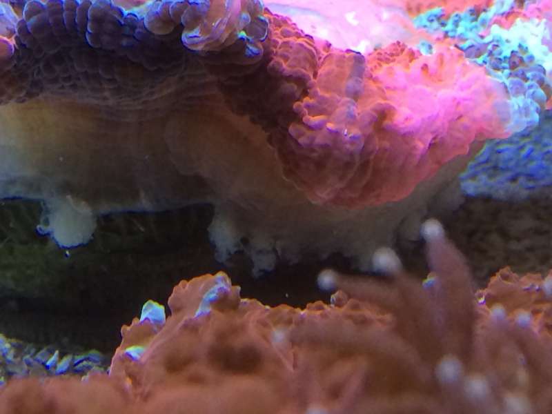 Man ser det fra tid til anden hvor korallen "kaster op" eller angriber en anden koral, især har jeg oplevet det ved Lobophyllia sp., de er slemme til det.