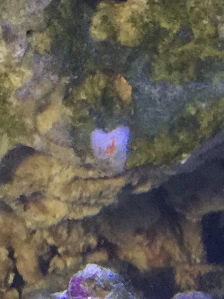 Hej set disse to på min koral. Prøver at komme til at tage et bedre billed af krabben. Men det ser sorte hul til højre fra krabben der nogen gange bevæger sig. Er det godt eller skidt?