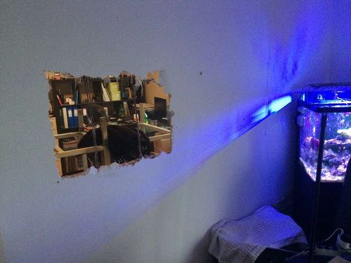 En aften sidder min kammerat og jeg og snakker, snakken går over på drømme akvariet, mange liter, lækker sump, flotte koraller, et hus til at bygge det i, "hov et hus, jamen det har jeg jo", altså et hus hvor jeg selv bestemmer, jamen så skulle det da helt sikkert være et indbygnings akvarie i væggen, "men hvor", og så gik snakken.
