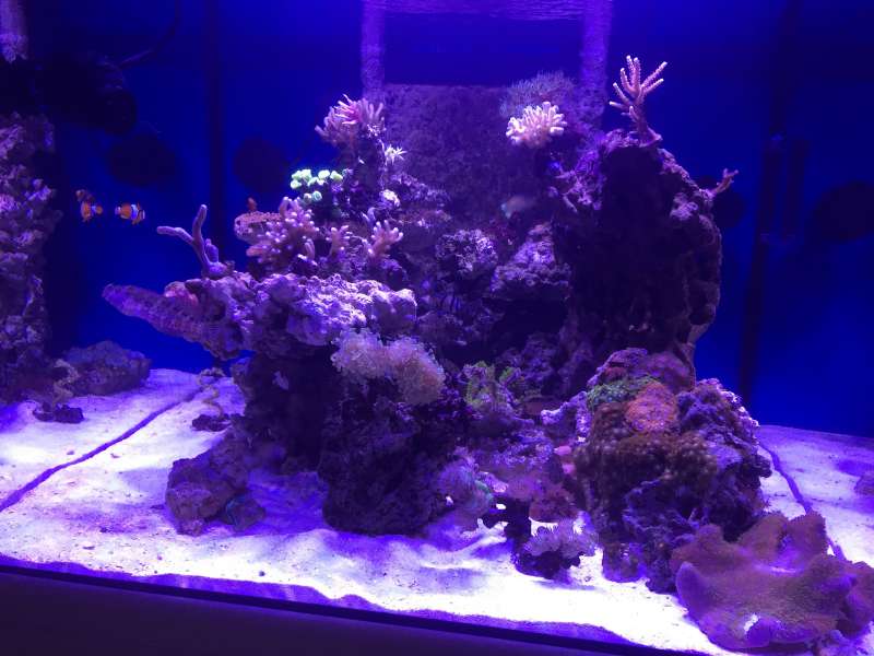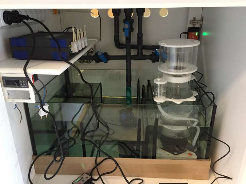 Har lige lånt en retur pumpe da den jeg har bestildt stadig ikke er kommet hjem så har lånt en Jebao DC3000. Har prøvekørt setuppet med hane vand og alt ser ud til at fungere som det skal, så nu får det lov at køre til i morgen for der ved at se om det drypper nogen steder