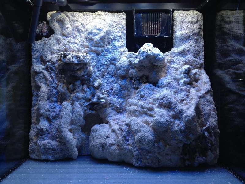 Tilbage til det med pu-skum så har jeg lavet flere baggrunde med det det er pisse fedt at forme, jeg plejer at lave en plexiglas plade som passer til baljen. Så starter jeg med skum hvor det skal fylde lidt mer og over sprøjter det med en vandforstøver. Så når det har sat sig bliver det lagt mer skum på lidt hist og pist og de steder som gerne må skumme lidt ekstra får lidt vand igen. Når den så har lavet hinde ( ca 1-1,5 time) tar jeg handsker på og former det ved at trykke det lidt sammen så det bliver skævt og naturligt. Når det så er tørt bruger jeg pu-lim som fordeles ud over det hele med pensel og drysser op med groft korallgrus og der efter fugter jeg nogle områder og så når lim kommer til syne drysser jeg fint korallgrus i disse områder. På den måde kan det laves så det kommer til at se naturligt ud. Husk inden det bliver taget i brug i akvariet skal det i vand og gasse af. Held og lykke.