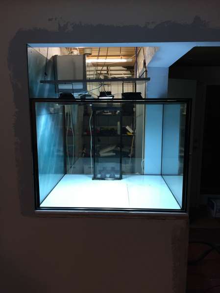 Så er drømmebyggeriet gået i gang. Et indbygget koldt saltvandsakvarium. Der kommer dobbelt så meget vand i hovedakvariet som det gamle.