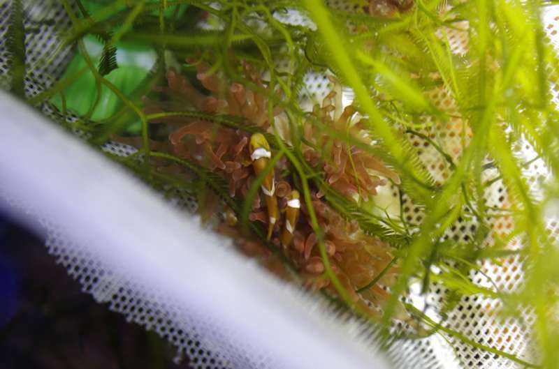 Så fik jeg givet de små klovne en lille anemone, som de allerede har taget flittigt i brug