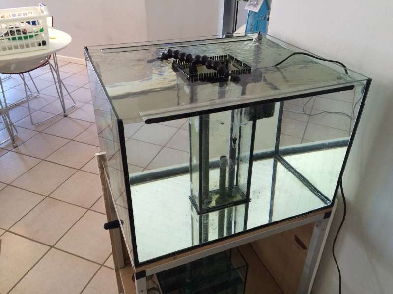 Da jeg har et overløb midt i min tank, vil jeg forsøge at holde glasset i akvariet fri for pumper. Jeg har derfor sat et powerhead (Eheim 2000 L/T) på overløbet, men skaber det mon cirkulation nok sammen med retrur vandet fra sumpen (Tunze 1073.040 3000 L/T)? Spørgsmålet er om om jeg skal have et kraftigere powerhead?