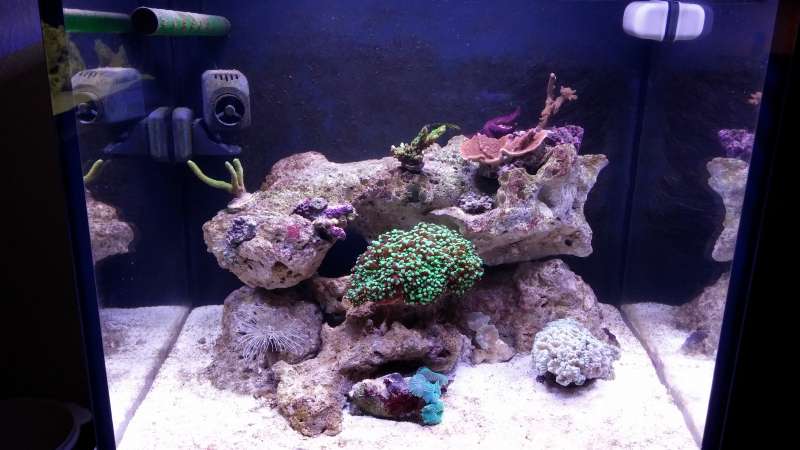 Ser rigtig fornuftigt ud, og jeg er glad for der er folk som dig der tager ''chancer'' med koraller i små akvarier :GO Dejligt med lidt SPS også