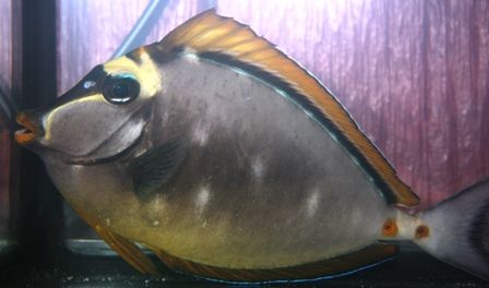 Den har tidligere gået med en hvidbrystet, men denne blev solgt videre for selvom de kunne enes kunne jeg se at den hvidbrystede ikke trivedes selvom de ikke slåssede, den spiste men tabte sig afligevel, ved den nye ejer går den som ene Acanthurus og har taget fint på igen.