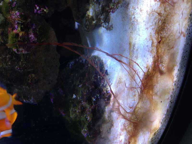Hej alle. Her i løbet af en uges tid er der dukket en form for alge/cyano bakterie op i tråd form, som jeg aldrig har set før. Akvariet er rimelig nyt, og har en nitrat på ca. 5 og 0 i nitrit, der er fuld knald på cirkulationen især hvor emnet befinder sig i akvariet, og masser lys over baljen. Nogle bud på hvad det er? Jeg har ikke kunne måle fosfat, så måske det er her vi har problemet? Har lavet en del vandskifte på det sidste med ro vand.