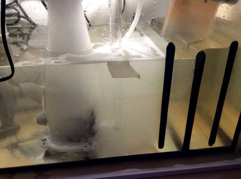 Og sidst, hvis jeg får en fornuftig højde på skum i skummeren, så kaster den luft bobler rundt om hele skummeren og kommer ud nedenunder skummeren.