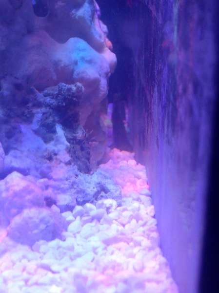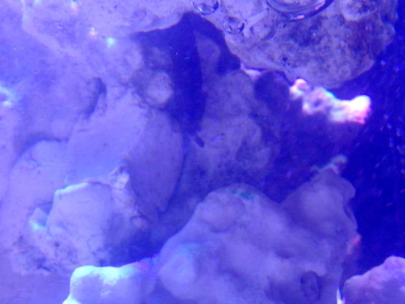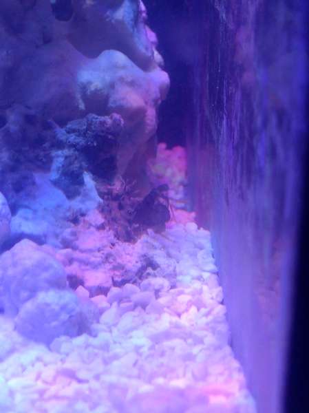 Fik en levende sten til at pode mit nye system med, men da jeg satte stenen i vandet var der noget der svømmede ind i den eksisterende stensætning, troede først der havde smuglet sig en lille fisk med men efter lidt tid kom denne her skabning frem.