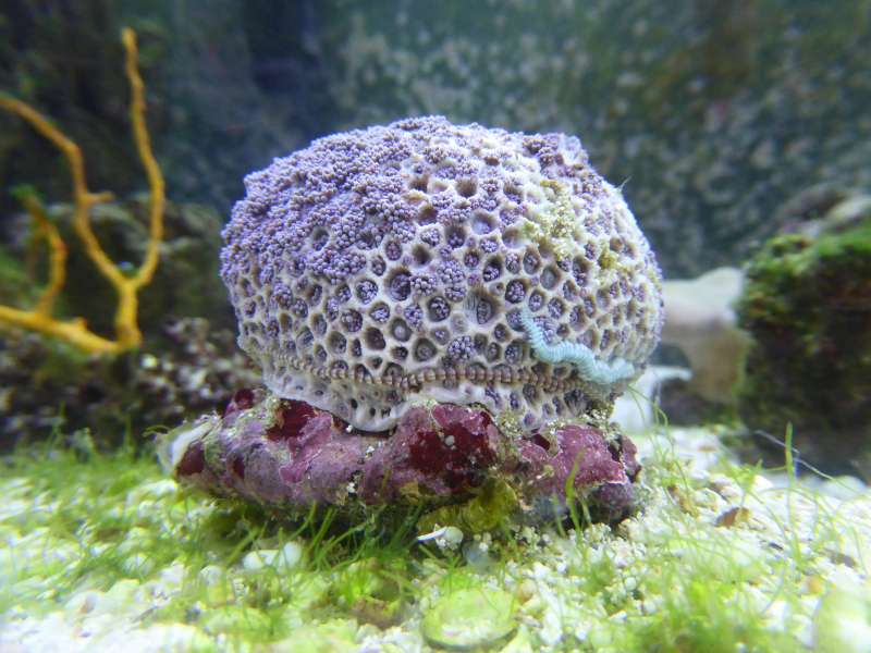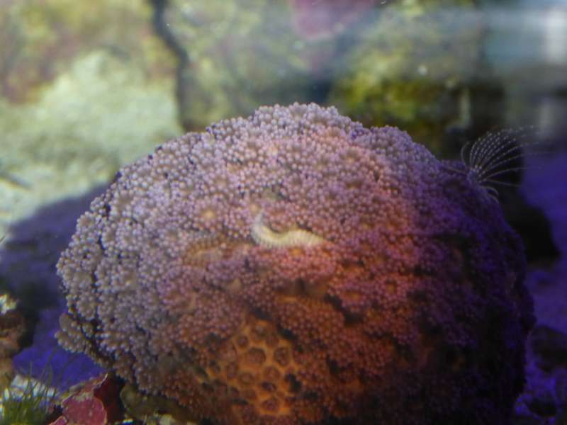 Min lilla/blå goniopora har fået orm. Jeg kan ikke finde ud af om det er godt eller dårligt. Den folder sig ikke helt ud som den har gjort.
