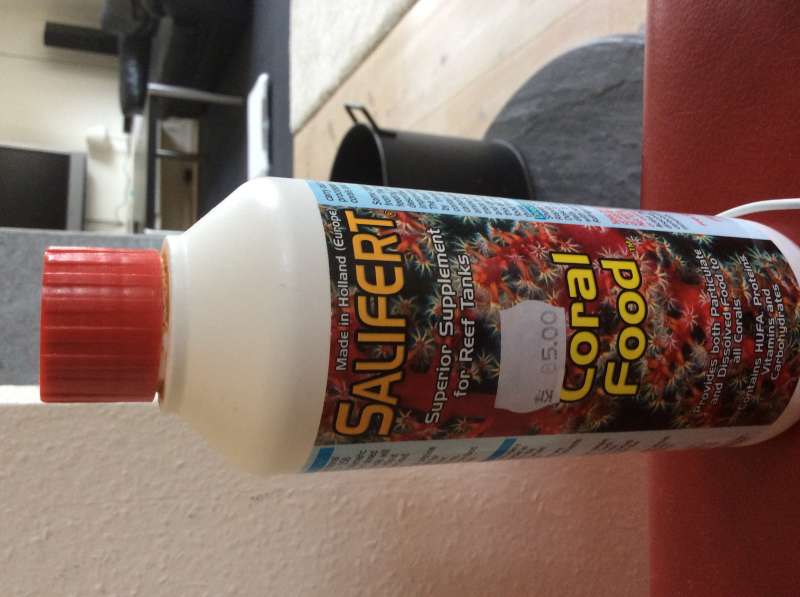 Har selv en anden flaske fra salifert med "koralføde" er det lige så godt ( skal ikke stå på køl )