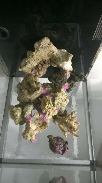 OG hvad har jeg så valgt at fylde i det -først og fremmest har Kenneth hjulpet med at lave noget aqua scaping af levende sten, der er kommet lidt sten i bunden, for at have det visuelle i orden. Jeg har sat en ekstra lille pumpe ned i akvariet, for at sikre mere flow til koralerne, Aqua Medic Blenny skummeren + pumpe fungere perferkt, i tilfælde af om der er nogen der stiller ? om, om de er gode nok. For at gøre livet let for mig og have happy koraler, så har jeg sat en varme termostat på, samt været så heldig, at jeg har en automatisk vandpåfylder :h Herudover har jeg fyldt kulfilter og filtervat i Blenny pumpe systemet.