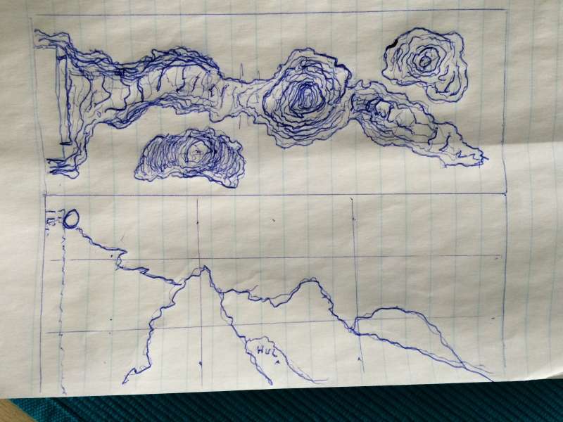 Har lavet et udkast til aquascape. Baljen er 150 cm lang. 60 høj og 60 bred. Kan ses fra 3 sider som en rumdeler. Tænker at opbygningen bliver meget mere luftig end min sølle streg kan vise. Masser af huller mm i stensætningen. Hertil kun én pumpe. Den store Gyre, placeret i toppen af overløb. Så må jeg tjekke hvad vej den skal køre.