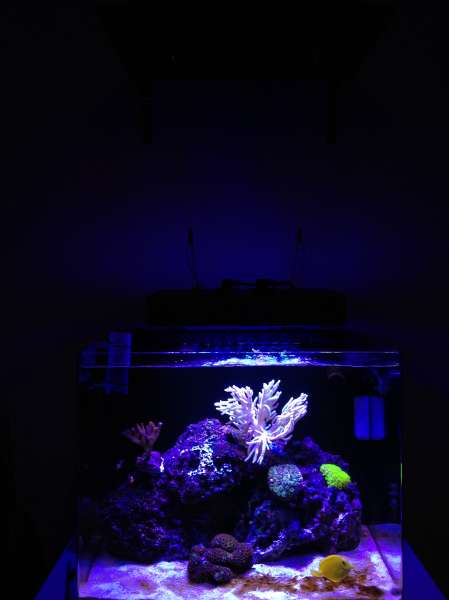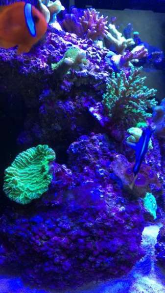 Det skal siges at da jeg startede akvarierne var jeg på SU :BA , så det var bare planen med lidt fisk og ingen koraller. Jeg fik prøvet krafter af med aftrækkere, muræner, kiruger osv. Jeg lærte rigtig meget.. Også at for mange fik og få hyppig fodre lige pludselig gav bagslag... Jeg røg ud i et kæmpe alge bloom.. Jeg solgte lidt fisk, og besluttede mig for at have lidt koraller i.. Det har så taget overhånd :K