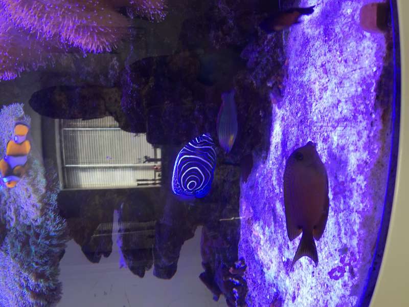 Den går sammen med et par a. ocellaris og ellers ikke andre fisk. Jeg har hammerkoral, og lidt blandede blødkoraller, skiver og zoas i akvariet. Duncan og caulastrea ville den ikke lade være, så de røg i sumpen. Jeg fodrer med flagefoder, noritang og pellets. Vil dog have købt noget kejser foder snarest.