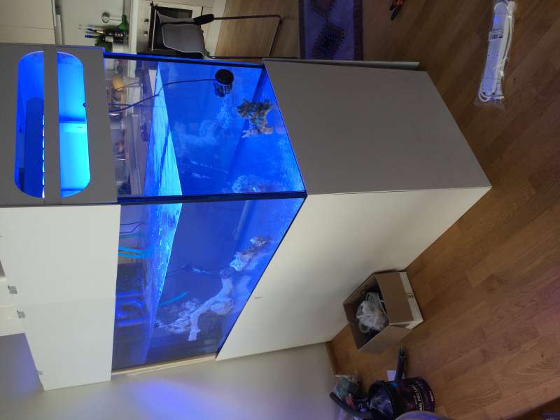 Snart 830 lit 160x80x65 med sump på 202 lit,4 stk Maxspect R420R Razor 160W, moddet til 15000 kelvin, Skimz Monster E 251, Tunze 6200+ 6305 og Maxpect Gyre 150 ,returpumpe SKIMZ 10000 DC. IKS Computer: redox,PH,Temp.