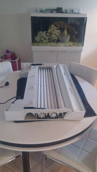 tja måske, der er bare ikke rigtig nogen grund til det så længe den ikke bliver varm, har også pillet blæserne ud i akvariet, så der er mere gennemtræk og et par huller i låget og det ser ud til at være mere end rigeligt, lampen er jo også med termostat, og hvis den bliver for varm ville de to blæser der sidder i led én tænde.