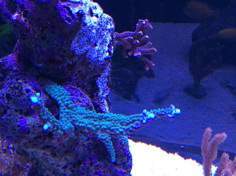 Denne anacropora er begyndt at skifte farve i spidserne.... Fra lysebrun til grønlig... Spændende