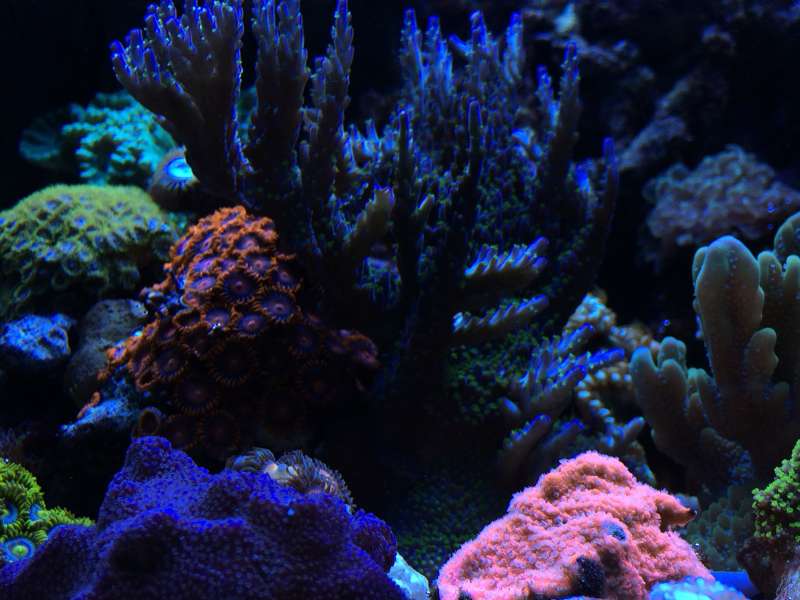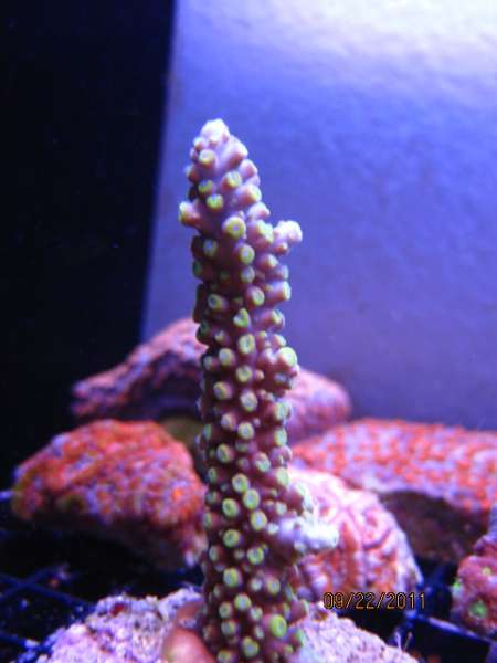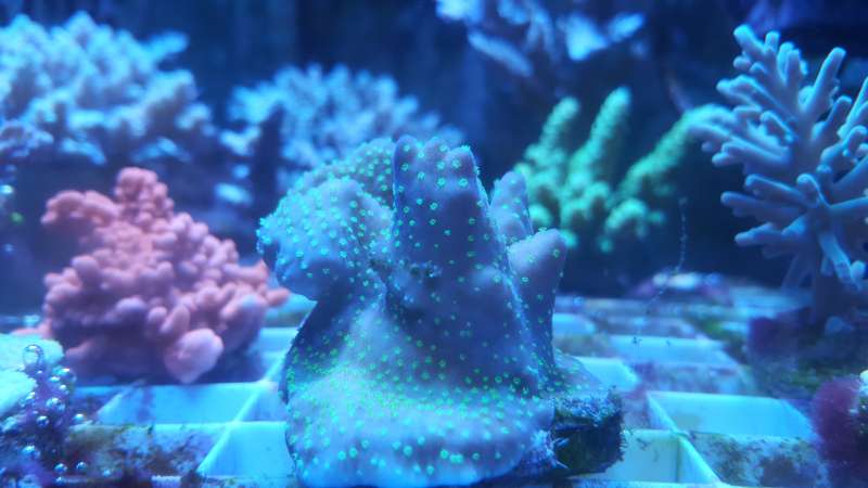 Allan M skrev:Har selv flere frag af tricolor og de der står helt oppe er mørklilla med irgrønne polypper. De frag der står helt nederst er brunligt med grønne polypper. Så ja, meget afhængige af placeringen.