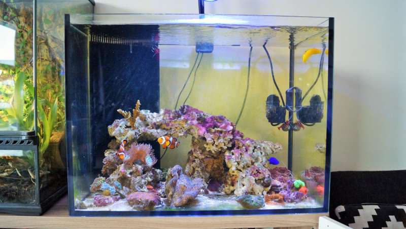 Invertebrater er 4 kardinal rejer, Deresa musling, mini maxi anemone og en håndfuld snegle.