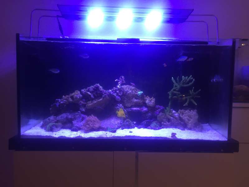 Bali Slimer. For at rette yderligere op på mit nitratproblem, startede jeg i mandags med at lave et 60L vandskifte dagligt, og det ser nu ud til på mit testsæt, at jeg er på vej den rette vej, i det at den ikke med det samme bliver fuld pink, men istedet gradvist øger farveintensitet i løbet af de 3minutter, som testen skal stå. Jeg fortsætter de daglige vandskifte indtil jeg er på rettekurs igen, hvorefter jeg skal hanke op i mig selv, og lave et ugentlig vandskifte på 20L. Jeg havde overvejet et fuld vandskifte, men var i den forbindelse bange for, at jeg så ville få en helt ny indkøringsperiode, hvilket jeg ikke ønsker, da jeg gerne vil beholde det levende indhold, som jeg nu har.