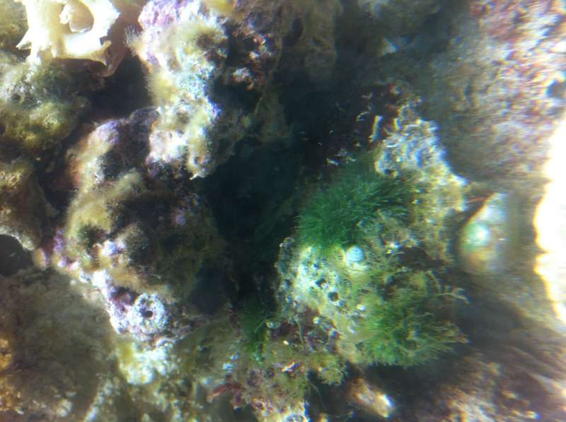 1. Mine lilla alger ser ud til at dø? hvad er årsagen, hvad gør jeg for at rette? 2. Hvad er det for noget grønt "græs"? 3. Hvad er det for noget brunt snask jeg har på bunden? er det et dødt område?