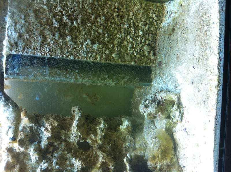 Det "brune snask" ligner en "død" zone som du selv skriver. Jeg syntes der ligger MEGET hvis din balje "kun" har kørt i 2 md. Sug det evt op ved et vandskifte.