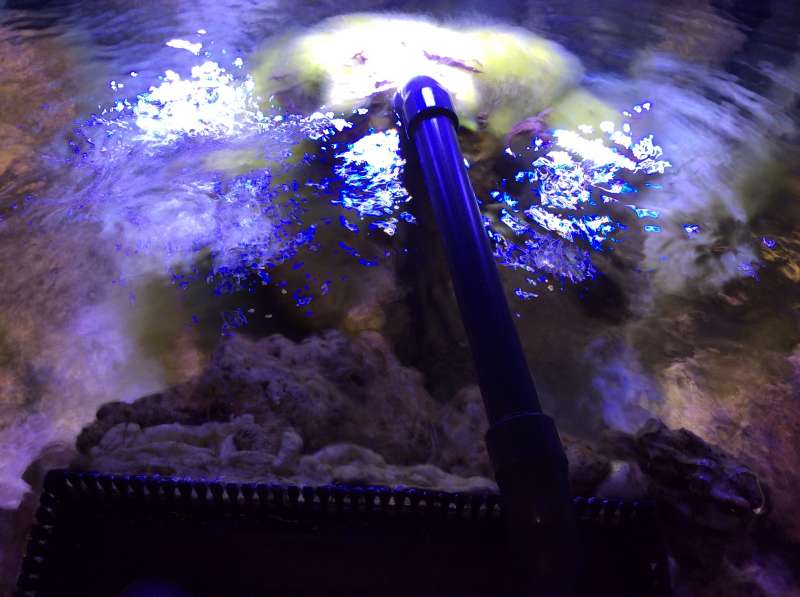 Lige nu kommer vandet fra nedløbet ud lige ved indsugningen til Reeddragon´en. Det vil med sikkerhed give problemer. Jeg ved det for jeg har samme problem og jeg kan se at du forholdsvis fint sand. Der skal ikke mere til en lysten klovnfisk, der syntes det er morsomt at stikke halen ned i sandet og hvirvle det up ca. 15-20 gange dagligt.