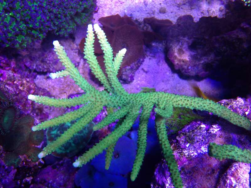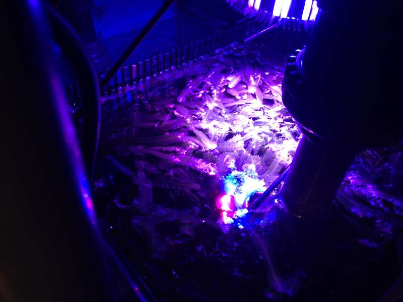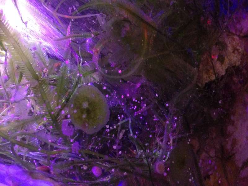 Akvariet har nu kørt i en måneds tid. Efter en uge kom de første brune alger og efter et par dage mere fik de grønne taget over. De er nu efterhånden temmelig langhårede og de er også blevet lidt fesne i farven at se på. Vandværdierne er som følger: