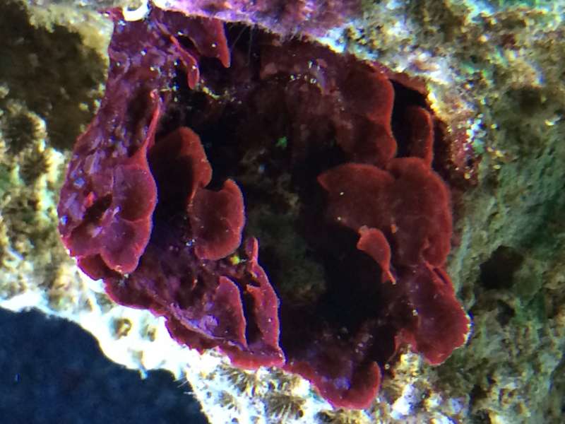 Da jeg for satte mit akvarie op for omkring 7 måneder siden, købte jeg nogle levende sten. Jeg opdagede efter et par måneder en rødlig svamp/alger (eller hvad det nu er). På det seneste er den vokset markant og har spredts sig til andre dele af akvariet! Og nu ville jeg gerne vide hvad det er for noget, da jeg synes den er ret spændene og flot.