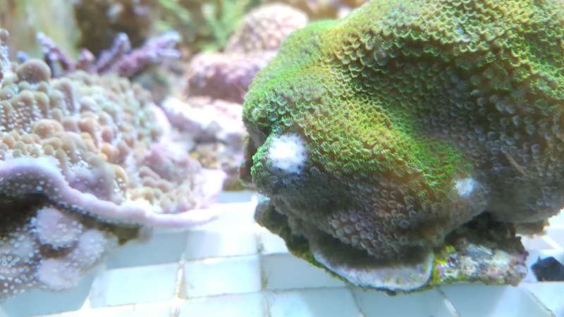 En anden ting der gør, at jeg personligt tror at det er en anden slægt, er en underlig sygdom/parasit/snylter, som min moderkoral fik. Det er IKKE MEN, det er tjekket grundigt. Ingen af de andre typer har haft noget der ligner dette. Det ramte også kun moderkorallen. Selv fragmenter af ”sunset” der stod klods op af moderkorallen, blev ikke ramt.