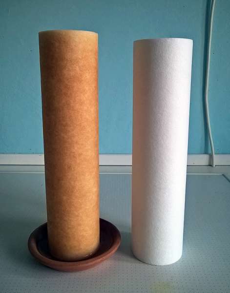 her er forskellen på det gamle, der havde siddet i anlægget i 7 mdr og et nyt filter. så at sige der er rent vand i hanen skal tages med et gran salt
