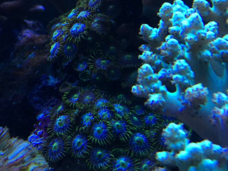 Zoa'er laver bæ som de fleste andre dyr og det er så det du ser på foto, nogle bruger lang tid på at diskutere om de laver bæ eller om de "regulere" deres symbiose alger, men det er sikkert at det du ser er helt normalt og ikke nødvendigt at bekymre sig over.