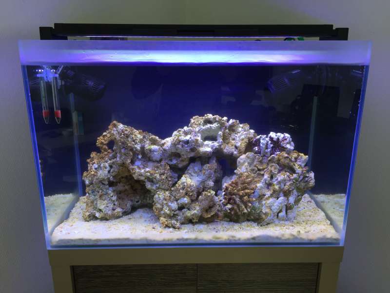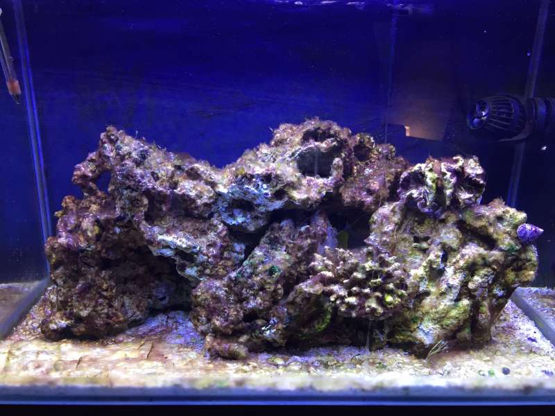 Systemet har nu kørt i 4 måneder, af levende er der kun 4 turbosmgle som kom i for 2 dage siden og en blå benet eremit krebs som har været der i næsten 2 måneder