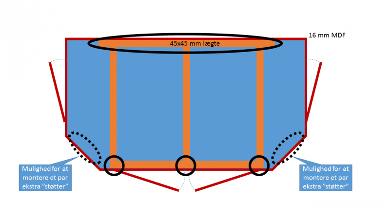 Tak for input Thomas. Jeg havde dog allerede skåret det ud i MDF. Jeg har coated det med flere gange grunder og maling, så håber det vil give en beskyttende hinde. Det skal siges at jeg har meget store bøljebrydere hele vejen rundt (med undtagelse af de to bagerste hjørner.