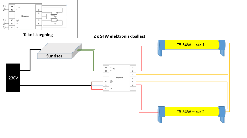 Der er tale om en elektronisk ballast fra Philips (2x54W, dimmable). Derudover har jeg købt mig en Akvastabil Sunriser til at styre dusk/dawn effekt.