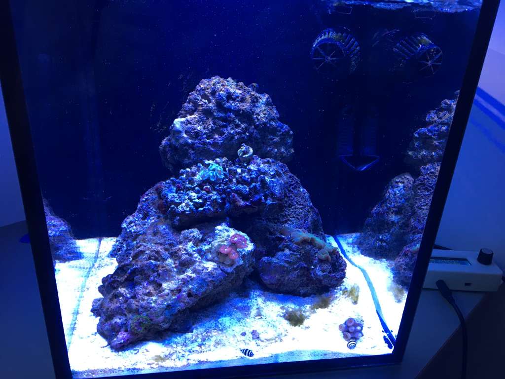 Akvariet er primært tiltænk zoas. Ungerne skriger dog efter en klovnfisk, så mon ikke en lille miniklovn finder vej på et tidspunkt?