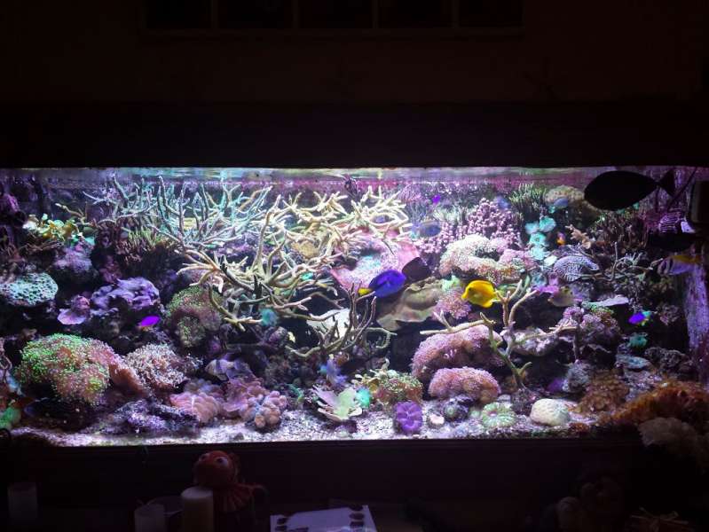 Vores akvarie har nu kørt siden August 2012 og vi køre stadig med den stensætning der blev sat den gang, eneste ting vi har ændret er at vi har skiftet nogen stor tunze pumper ud med nogen gyre, og lyset er blevet skiftet fra 160 watt til 180 watt, vi planlægger ikke på at bygge om i det eller start et nyt op da vi ganske enkelt ikke har plads til større, første akvarie var på 700 liter i DT og nu er vi oppe i 1700 liter DT det vil sige at vi øger med 142% hver gang vi skifter Hehe så hvis vi siger 1700+ 142% =4114 liter hvis vi skal forsætte den stil ;O)