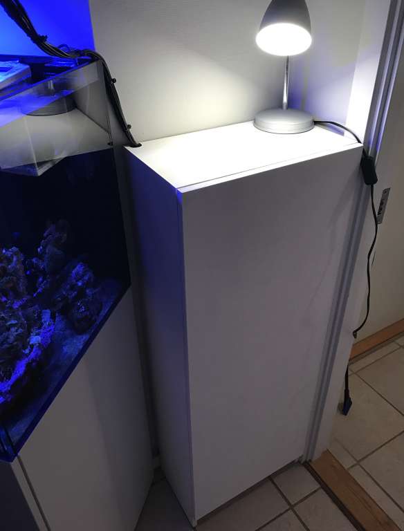 Jeg har fjernet ATO tanken i reeferen og erstattet den med en osmolator, slangen og flydeventilen stoppede til for tit, fordelen er at det er nemmere at komme til i sumpen.